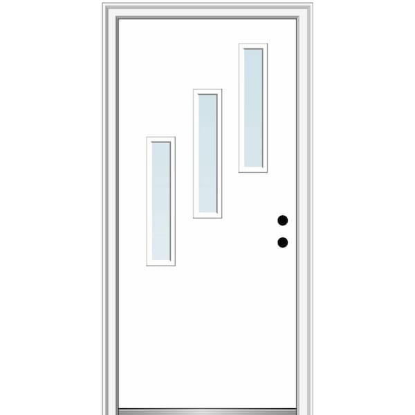 Davina 30 in. x 80 in. Left-Hand Inswing 3-Lite Clear Low-E Primed Fiberglass Prehung Front Door on 4-9/16 in. Frame