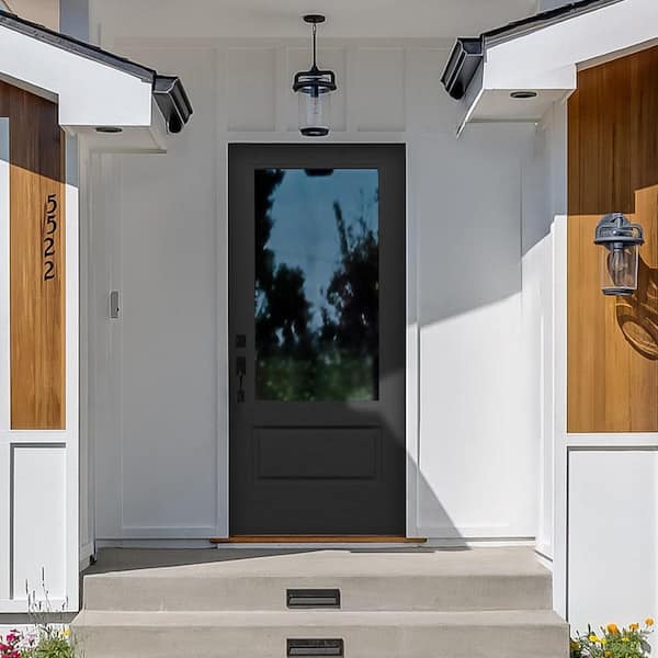 Direct Glaze 30 in. x 80 in. Right-Hand Inswing 3/4 Lite Clear Low-E Black Fiberglass Prehung Door on 6-9/16 in. Frame