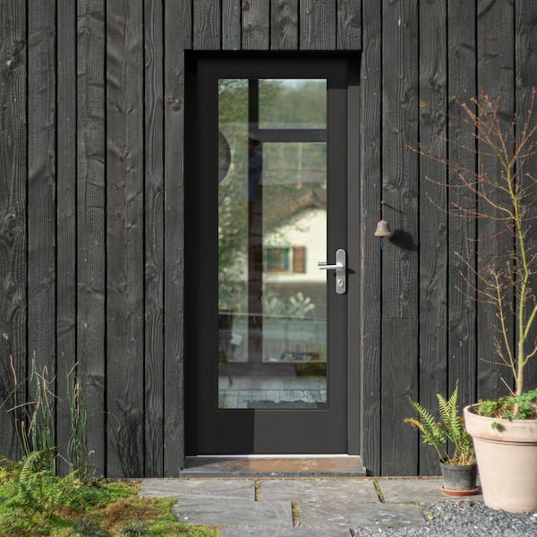 Direct Glaze 32 in. x 80 in. Left-Hand Inswing Full Lite Clear Low-E Black Fiberglass Prehung Door on 6-9/16 in. Frame