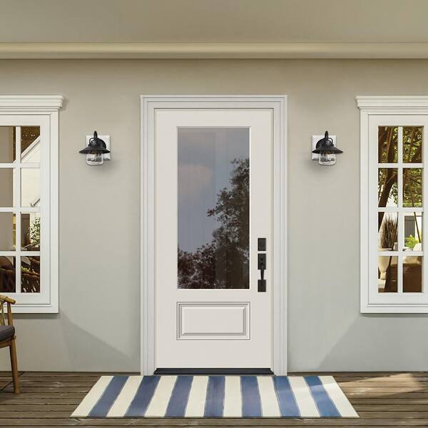 Direct Glaze 36 in. x 80 in. Left-Hand Inswing 3/4-Lite Clear Low-E Primed Fiberglass Prehung Door, 4-9/16 in. Frame
