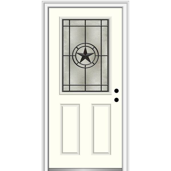 Elegant Star 36 in. x 80 in. Left-Hand/Inswing 1/2 Lite Decorative Glass Alabaster Painted Fiberglass Prehung Front Door