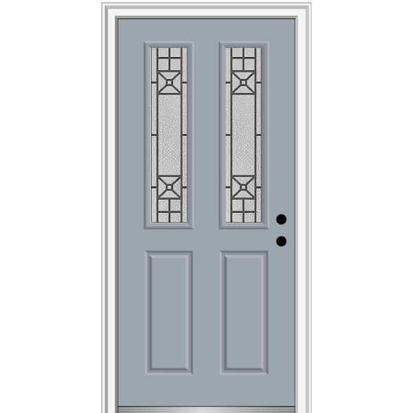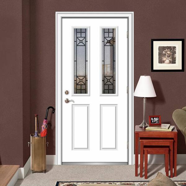 30 in. x 80 in. Courtyard Left-Hand 2-Lite Decorative Painted Fiberglass Smooth Prehung Front Door, 4-9/16 in. Frame
