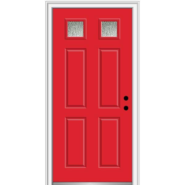 30 in. x 80 in. Left-Hand/Inswing Rain Glass Red Saffron Fiberglass Prehung Front Door on 4-9/16 in. Frame