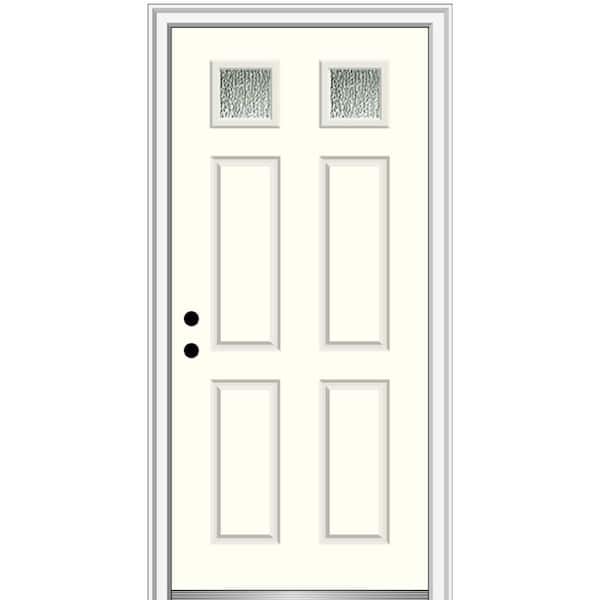 30 in. x 80 in. Right-Hand/Inswing Rain Glass Alabaster Fiberglass Prehung Front Door on 6-9/16 in. Frame