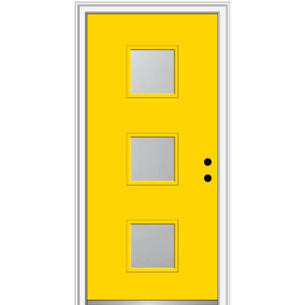32 in. x 80 in. Aveline Left-Hand Inswing 3-Lite Frosted Glass Painted Fiberglass Smooth Prehung Front Door