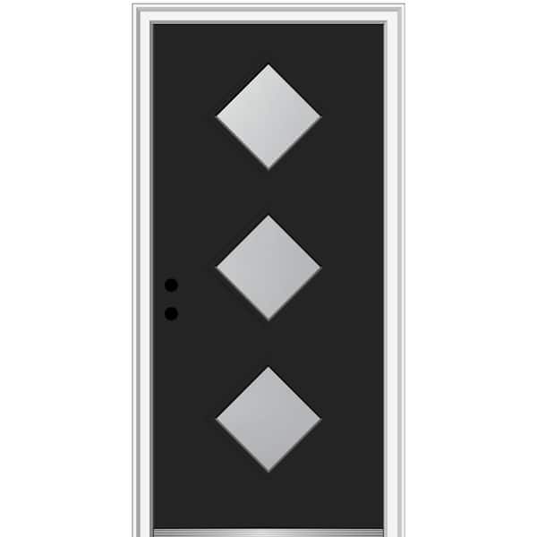 32 in. x 80 in. Aveline Right-Hand Inswing 3-Lite Frosted Glass Painted Steel Prehung Front Door on 4-9/16 in. Frame