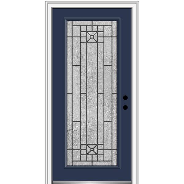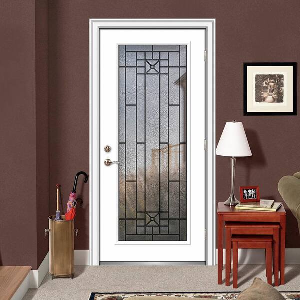 32 in. x 80 in. Courtyard Left-Hand Full-Lite Decorative Painted Fiberglass Smooth Prehung Front Door, 4-9/16 in. Frame