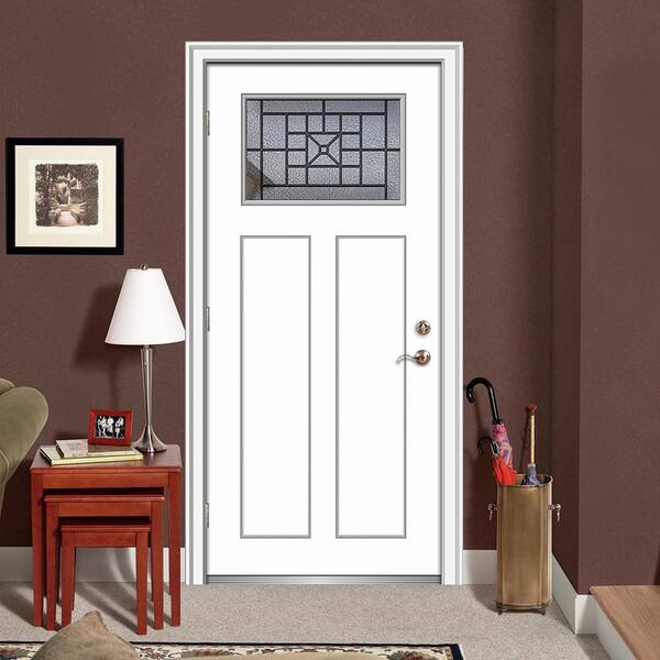 32 in. x 80 in. Courtyard Right-Hand 1-Lite Decorative Craftsman Painted Fiberglass Prehung Front Door, 6-9/16 in. Frame