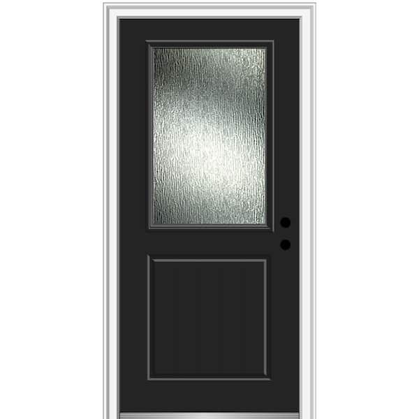 32 in. x 80 in. Left-Hand/Inswing Rain Glass Black Fiberglass Prehung Front Door on 6-9/16 in. Frame