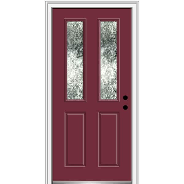 32 in. x 80 in. Left-Hand/Inswing Rain Glass Burgundy Fiberglass Prehung Front Door on 4-9/16 in. Frame