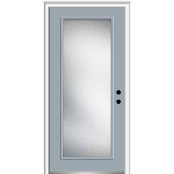 32 in. x 80 in. Micro Granite Left-Hand Inswing Full Lite Decorative Painted Fiberglass Smooth Prehung Front Door