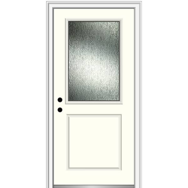 32 in. x 80 in. Right-Hand/Inswing Rain Glass Alabaster Fiberglass Prehung Front Door on 4-9/16 in. Frame