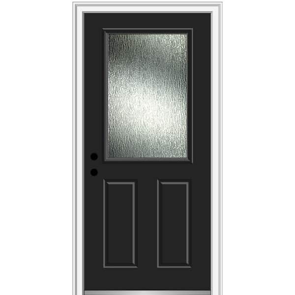 32 in. x 80 in. Right-Hand/Inswing Rain Glass Black Fiberglass Prehung Front Door on 4-9/16 in. Frame