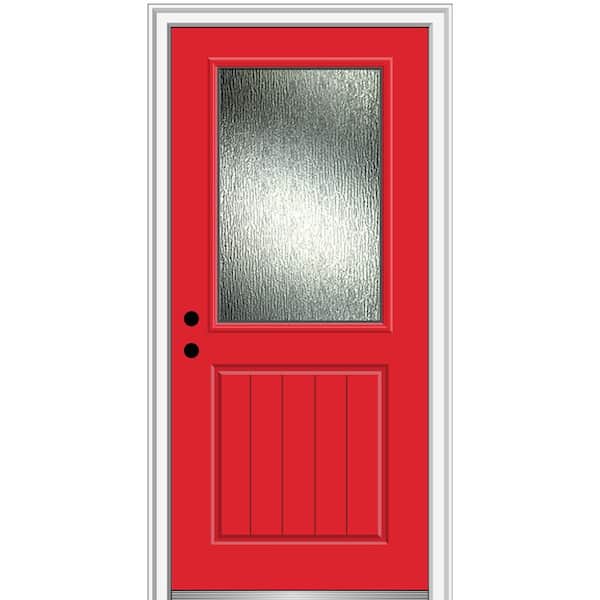 32 in. x 80 in. Right-Hand Inswing Rain Glass Red Saffron Fiberglass Prehung Front Door on 4-9/16 in. Frame