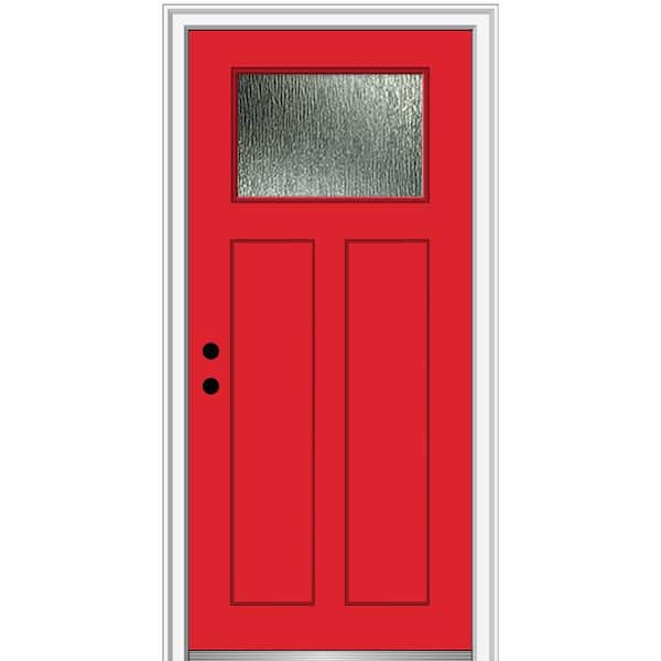 32 in. x 80 in. Right-Hand Inswing Rain Glass Red Saffron Fiberglass Prehung Front Door on 6-9/16 in. Frame