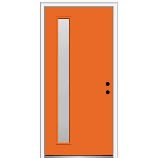32 in. x 80 in. Viola Left-Hand Inswing 1-Lite Frosted Glass Painted Steel Prehung Front Door on 4-9/16 in. Frame