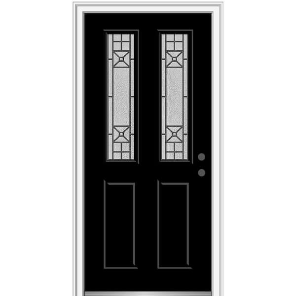 34 in. x 80 in. Courtyard Left-Hand 2-Lite Decorative Painted Fiberglass Smooth Prehung Front Door on 6-9/16 in. Frame