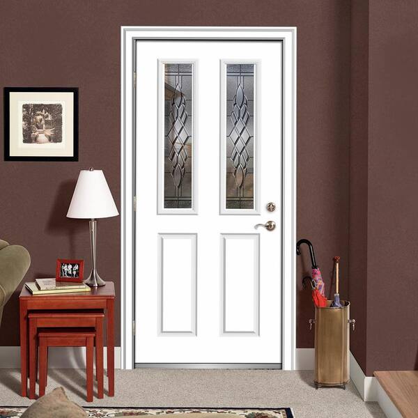 34 in. x 80 in. Grace Right-Hand Inswing 2-Lite Decorative Primed Fiberglass Prehung Front Door on 6-9/16 in. Frame