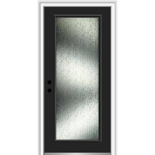 34 in. x 80 in. Right-Hand/Inswing Rain Glass Black Fiberglass Prehung Front Door on 4-9/16 in. Frame