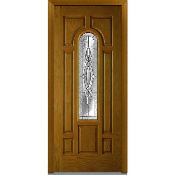36 in. x 80 in. Brentwood Right-Hand 3/4 Lite 7-Panel Classic Stained Fiberglass Oak Prehung Front Door