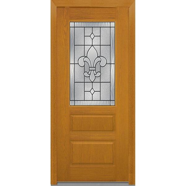 36 in. x 80 in. Carrollton Left-Hand Inswing 1/2-Lite Decorative 2-Panel Stained Fiberglass Oak Prehung Front Door