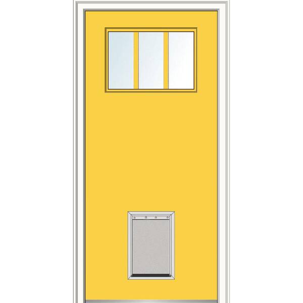 36 in. x 80 in. Classic Left-Hand Inswing 3-Lite Clear Painted Fiberglass Smooth Prehung Back Door with Large Pet Door