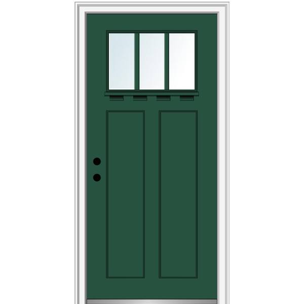 36 in. x 80 in. Clear LowE Glass 3 Lite Hunter Green Shaker with Shelf Painted Fiberglass Smooth Prehung Front Door