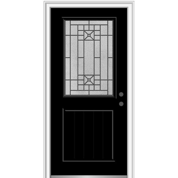 36 in. x 80 in. Courtyard Left-Hand 1/2 Lite Decorative Painted Fiberglass Smooth Prehung Front Door, 4-9/16 in. Frame