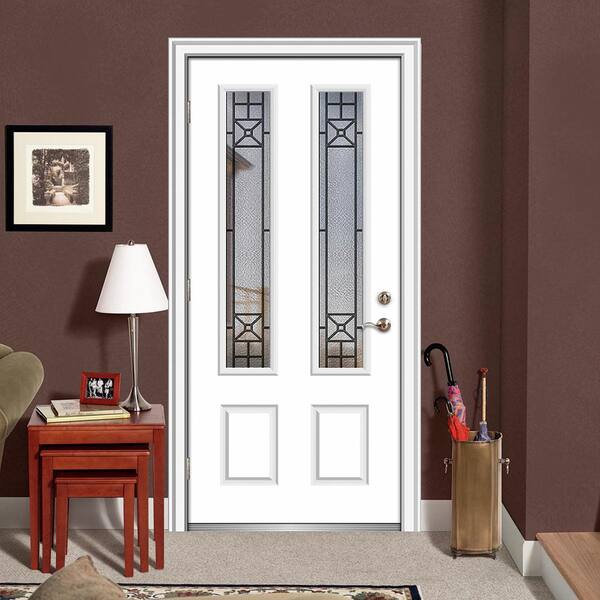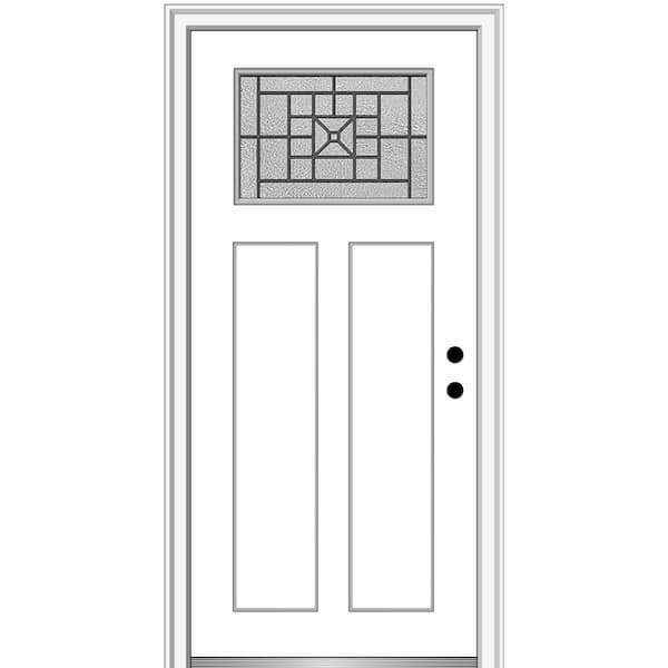 36 in. x 80 in. Courtyard Left-Hand 1-Lite Decorative Shaker Primed Fiberglass Prehung Front Door, 4-9/16 in. Frame