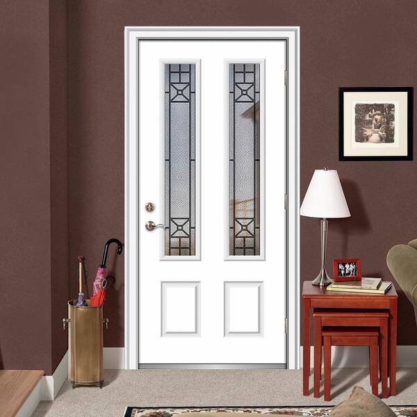 36 in. x 80 in. Courtyard Left-Hand 2-Lite Decorative Painted Fiberglass Smooth Prehung Front Door on 6-9/16 in. Frame