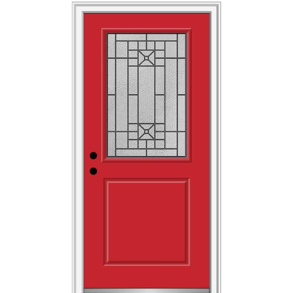 36 in. x 80 in. Courtyard Right-Hand 1/2-Lite Decorative Painted Fiberglass Smooth Prehung Front Door, 6-9/16 in. Frame