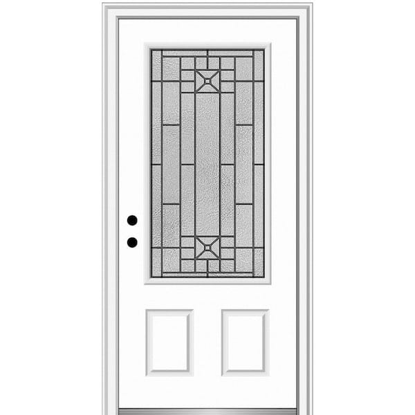 36 in. x 80 in. Courtyard Right-Hand 3/4 Lite Decorative Painted Fiberglass Smooth Prehung Front Door, 4-9/16 in. Frame