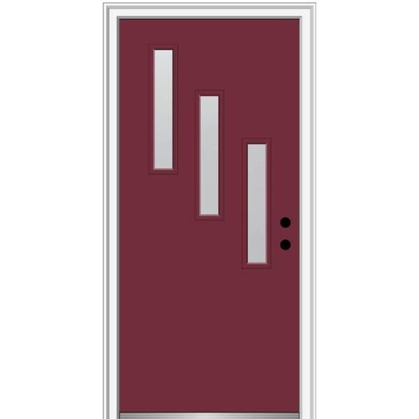 36 in. x 80 in. Davina Left-Hand Inswing 3-Lite Frosted Glass Painted Fiberglass Prehung Front Door on 4-9/16 in. Frame