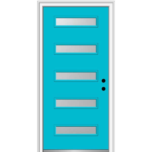 36 in. x 80 in. Davina Left-Hand Inswing 5-Lite Frosted Glass Painted Fiberglass Smooth Prehung Front Door