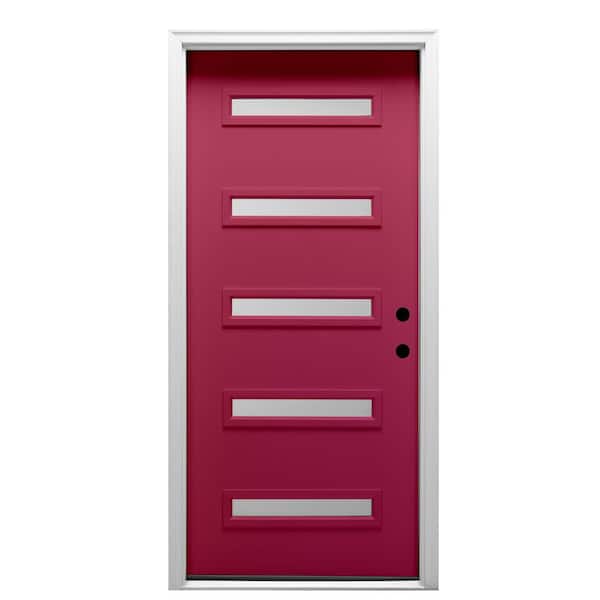36 in. x 80 in. Davina Left-Hand Inswing 5-Lite Frosted Glass Painted Steel Prehung Front Door on 6-9/16 in. Frame