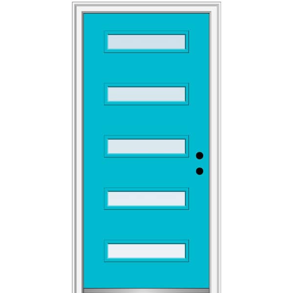 36 in. x 80 in. Davina Low-E Glass Left-Hand Inswing 5-Lite Clear Modern Painted Fiberglass Smooth Prehung Front Door