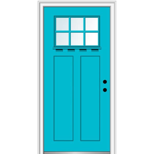 36 in. x 80 in. Left-Hand Inswing 6-Lite Clear 2-Panel Shaker Painted Fiberglass Smooth Prehung Front Door with Shelf