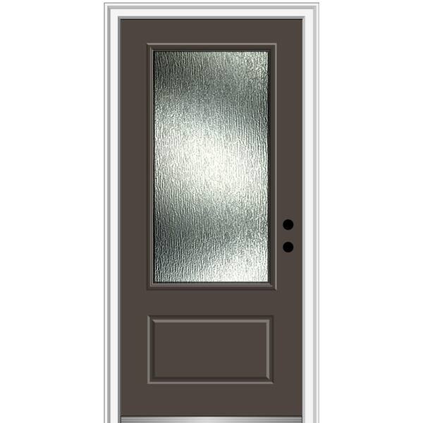 36 in. x 80 in. Left-Hand Inswing Rain Glass Brown Fiberglass Prehung Front Door on 6-9/16 in. Frame