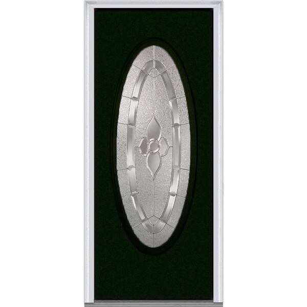 36 in. x 80 in. Master Nouveau Left-Hand Inswing Oval Lite Decorative Painted Steel Prehung Front Door