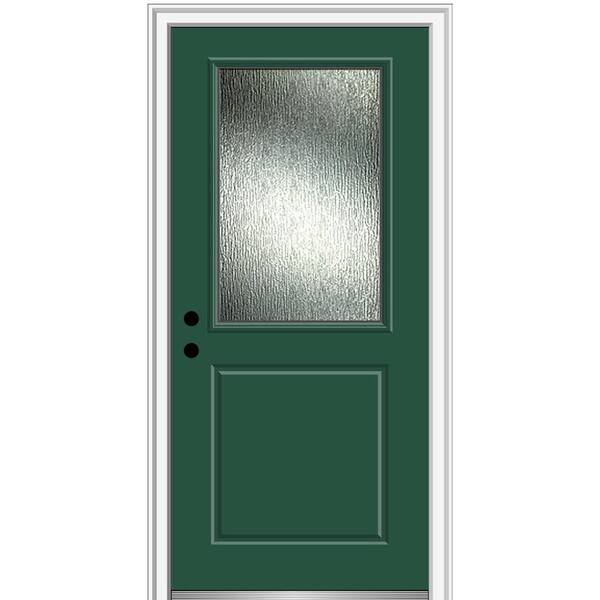 36 in. x 80 in. Right-Hand/Inswing Rain Glass Hunter Green Fiberglass Prehung Front Door on 6-9/16 in. Frame