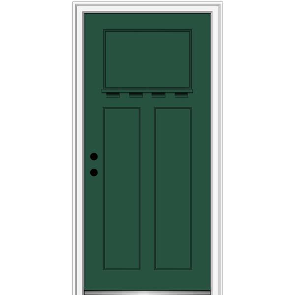 36 in. x 80 in. Shaker Right-Hand Craftsman 3-Panel Painted Fiberglass Smooth Prehung Front Door with Dentil Shelf