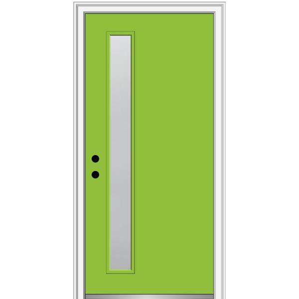 36 in. x 80 in. Viola Right-Hand Inswing 1-Lite Frosted Midcentury Painted Fiberglass Smooth Prehung Front Door