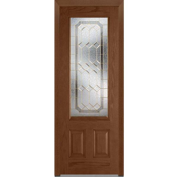36 in. x 96 in. Majestic Elegance Right-Hand Inswing 3/4-Lite Decorative Stained Fiberglass Oak Prehung Front Door