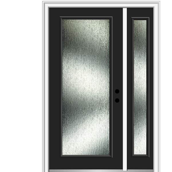 48 in. x 80 in. Left-Hand Inswing Rain Glass Black Fiberglass Prehung Front Door on 4-9/16 in. Frame