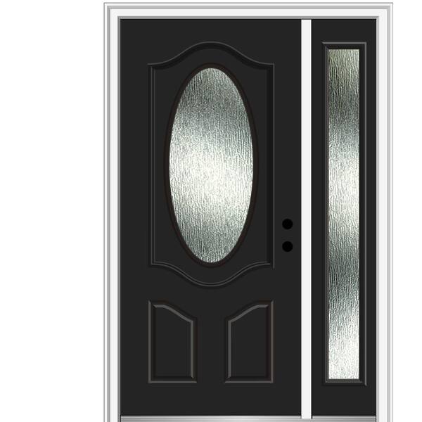 48 in. x 80 in. Left-Hand Inswing Rain Glass Black Fiberglass Prehung Front Door on 4-9/16 in. Frame