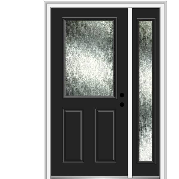 48 in. x 80 in. Left-Hand Inswing Rain Glass Black Fiberglass Prehung Front Door on 6-9/16 in. Frame