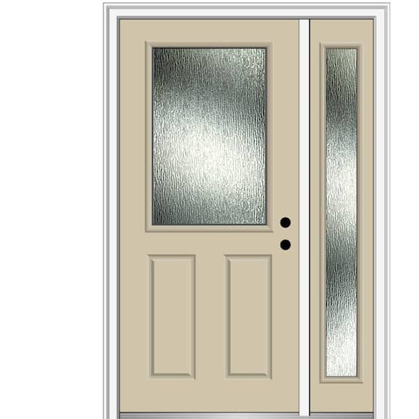 48 in. x 80 in. Left-Hand Inswing Rain Glass Wicker Fiberglass Prehung Front Door on 6-9/16 in. Frame