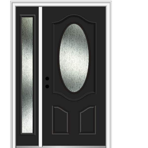 48 in. x 80 in. Right-Hand/Inswing Rain Glass Black Fiberglass Prehung Front Door on 6-9/16 in. Frame