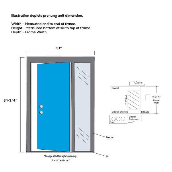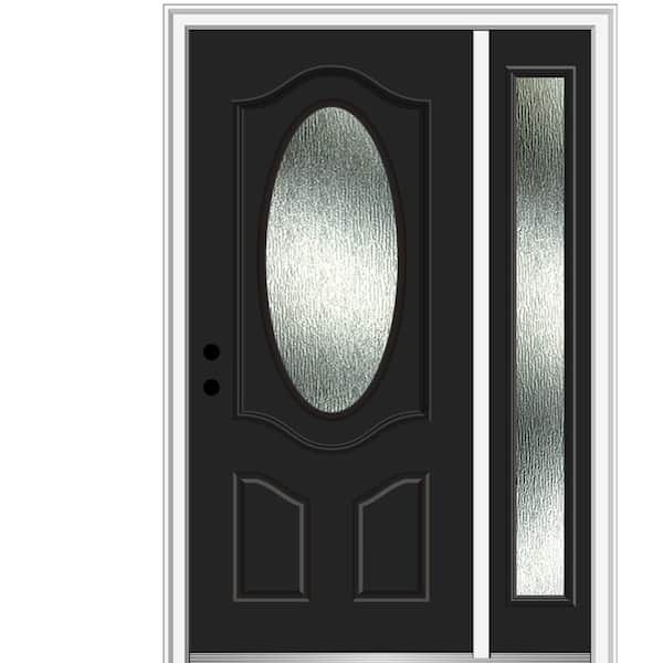 48 in. x 80 in. Right-Hand Inswing Rain Glass Black Fiberglass Prehung Front Door on 6-9/16 in. Frame