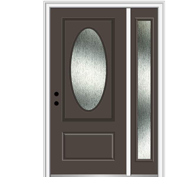 48 in. x 80 in. Right-Hand Inswing Rain Glass Brown Fiberglass Prehung Front Door on 6-9/16 in. Frame